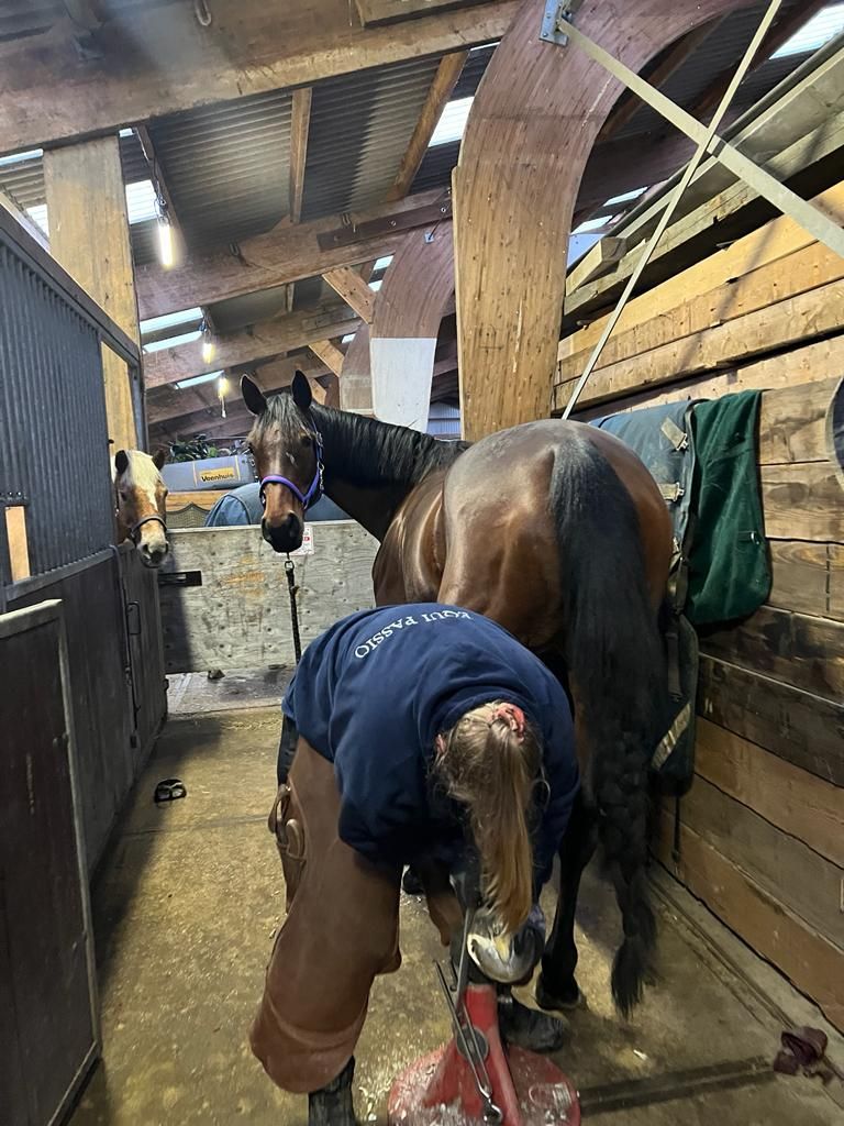Als hoefspecialist focus ik tijdens het bekappen op een goede hoefgezondheid en comfort voor het paard. Mijn kennis combineer ik met de feedback die het paard geeft om zo voor elk paard de beste omstandigheden te creëren.